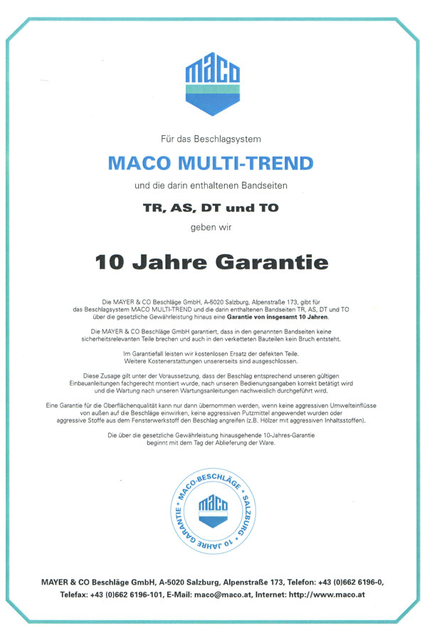 ООО «МАКО ФУРНИТУРА» является производственным подразделением австрийского концерна МАСО, одного из лидеров в области разработки и производства поворотной и поворотно-откидной фурнитуры для пластиковых и деревянных окон и дверей, фурнитуры для раздвижных конструкций, ставней, а также оконных ручек, дверных замков со взломостойкой защитой для межкомнатных и входных дверей. MACO связывает свой успех с качеством своей продукции. MACO стало первым предприятием из числа производителей фурнитуры в Европе, которое получило Сертификат качества DIN ISO 9001 MACO осознаёт ответственность перед своими покупателями и клиентами, поэтому "КАЧЕСТВО продукции" стоит на первом месте. Продукция проходит тщательный контроль качества не только на стадии производства, но и на стадии выхода к конечному клиенту. Каждый сотрудник осознаёт ответственность за качество собственного и общего показателя производительности продукции. Этого удалось достичь путём непрерывного обучения персонала. Такое же профессиональное развитие в отделе качества проходят поставщики комплектующих и обслуживающий персонал, постоянно совершенствуя свою квалификацию.